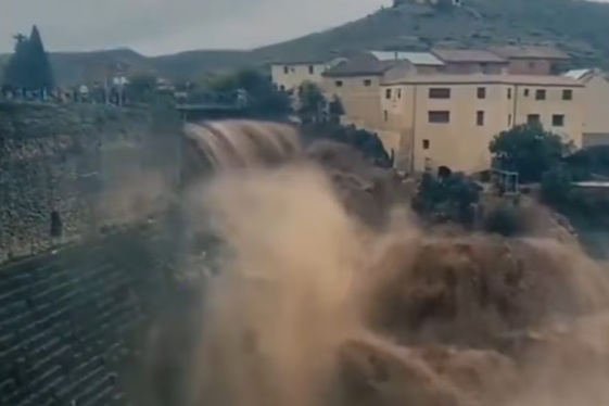 As anger grows in Spain over authorities' poor response to floods that have claimed more than 200 lives, footage has emerged showing how one town escaped the worst of the devastation thanks to a 2,000-year-old Roman dam, 134 meters high and 120 meters long. The video shows torrents of water crashing down on a hillside in northeastern Spain. Thanks...