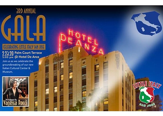 Sunday, February 23, 2020. 5:00 PM – 10:00 PM PST. Hotel De Anza, 233 West Santa Clara Street, San Jose, CA 95113. Little Italy San Jose cordially invites you to celebrate the groundbreaking of our Cultural Center & Museum to honor the many individuals, families and businesses that are making this project a reality.
