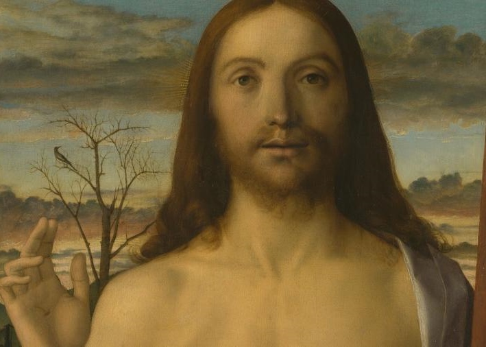 In his depiction of Jesus newly risen from the tomb and lifting his right hand in gentle blessing, painted around 1500, Giovanni Bellini represents Christianity’s savior as the morning dawn. At the far right, the bell tower of a distant town pierces the incandescent horizon, poised to toll and announce the arrival of a new day.