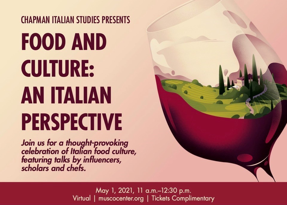 When: Saturday, May 1, 2021 | 11:00 a.m. PDT - What: Musco Center for the Arts, WIlkinson College, and the Italian Studies Program Present: Food and Culture: An Italian Perspective [Virtual Event] - Reserve now