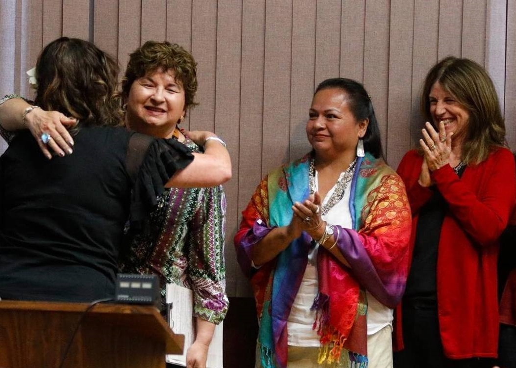 Flanked by members of the Northern Chumash Tribe, Mayor Heidi Harmon read a proclamation at Tuesday’s council meeting on members’ unanimous support of the holiday recognizing the history, culture, and value indigenous people add to the community.