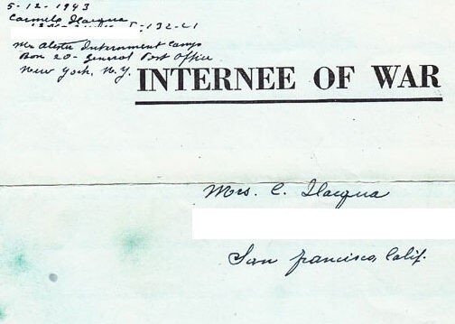 Italian Internees held in US internment camps were permitted to write only two short letters and one postcard per week. The length of the letter was determined by the space allotted to the internee on one side of a standardized piece of stationary supplied to internees by the US Government Printing Office as “Form Number 4”. This stationary was one-sized-fits-all, meaning it was the only kind offered to internees, and the brief instructions on the reverse side were printed in English, German, Italian and Japanese.