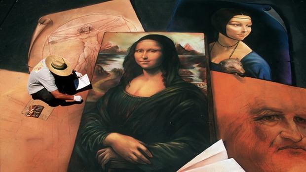 THE MADONNARI OF MARIN: Early summer, at least 'round California, is the high season for street painting. Santa Barbara, Pasadena, and San Rafael all celebrate the longtime art of the Madonnari. Think of being in a gallery, only outside, and every picture is under, or rather next to, your feet. It's a school of painting that is both beautiful and accessible. In fact, street painting, or the making of gorgeous images out of chalk and inspiration, may be the most accessible of all the visual arts. It's just there, to enjoy, out on the sidewalks of a town. It's also the briefest, too. One good rain and foosh! The pictures are gone.