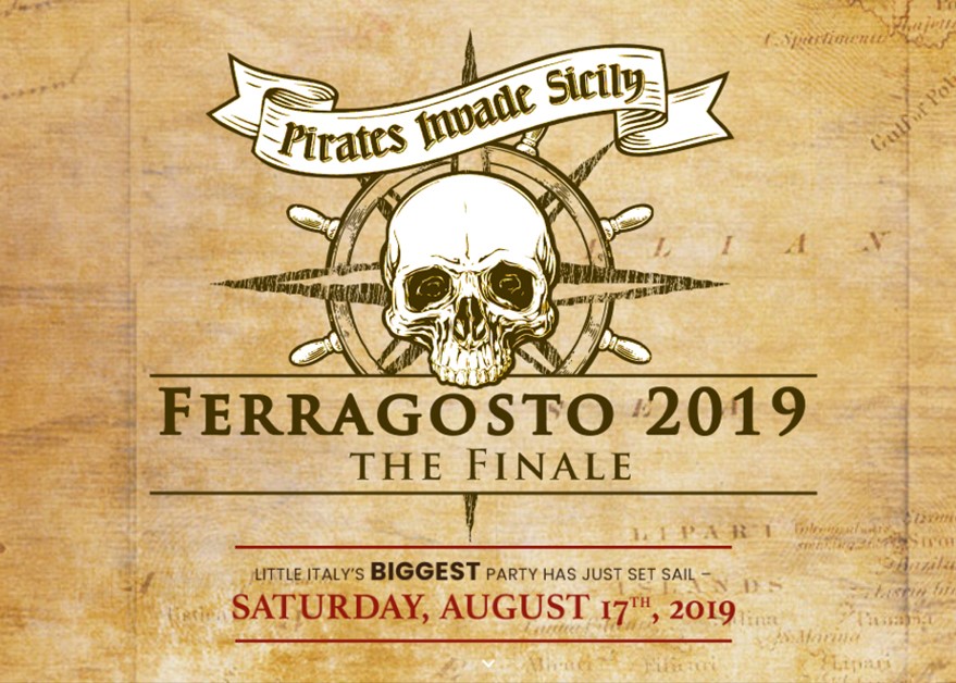 Get ready to party and benefit your Neighborhood all at the same time! It is that time of the year again! Ferragosto's final event: "Pirates Invade Sicily" is heading to Little Italy on Saturday, August 17, 2019. There will be pirates, shipwrecks, dancing, food, and giving for Little Italy's deserving charities. Reserve your seat and party and benefit your community all at the same time!