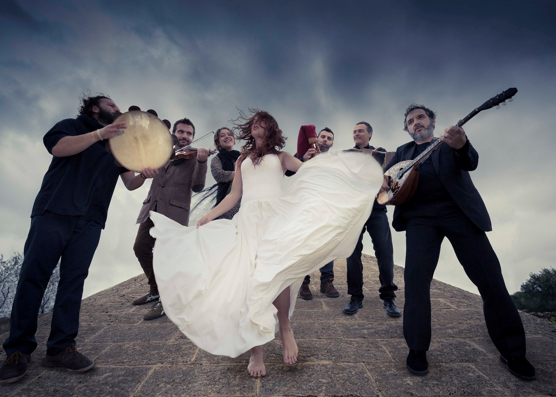 With a “few peers in contemporary world music” (New Yorker), Canzoniere Grecanico Salentino has been bringing the uproarious music and dance of Southern Italy to new audiences for over four decades. Founded by journalist, author, and Salentine musical scholar Caterina “Rina” Durante in the mid-1970s, CGS spearheaded a revival of the ancient folk music form pizzica tarantata that was born in Puglia’s Salento region, infusing it with a contemporary sensibility and rambunctious energy.