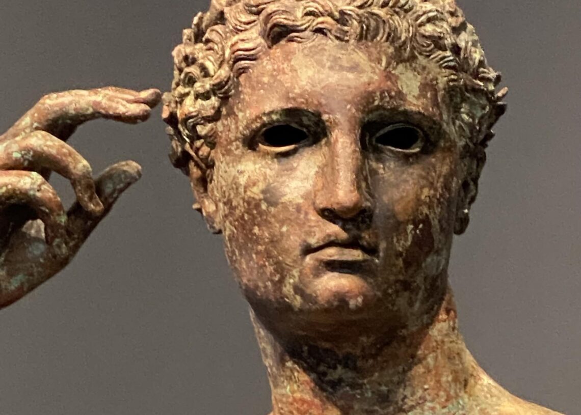 The captain of the vessel chipped at the figure and heard a metal sound, reassuring the frightened crew members that it was not a dead body. It was, it turns out, an exquisite ancient Greek bronze statue known as the Lysippos of Fano (and in California it is known by its aliases, the Getty Bronze and the Victorious Athlete).