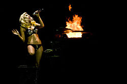 "I might have busted my ass on the Lower East Side, but there is something nice about a good dirty martini." There's a chill in the air, and while she's wearing only a tattered Springsteen tee tucked into high-waisted denim shorts, Gaga is intent on watching the sunset.