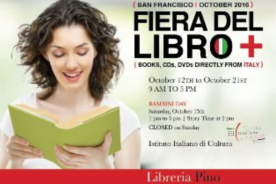 La Libreria Pino insieme con l'Istituto Italiano di Cultura sono orgogliosi di presentare la prima Fiera del Libro + San Francisco! In questo evento di 10 giorni sarranno presentati libri, cd e dvd importati direttamente dall'Italia. La Fiera del Libro + San Francisco avrà luogo presso l'Istituto Italiano di Cultura , situato a 601 Van Nes...
