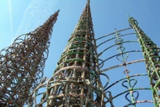 "Un complesso monumentale unico al mondo. Gli scarti di strada impastati di malta, sabbia e cemento costituiscono la materia prima; lo spirito vagabondo e l'inestimabile esperienza del migrante, ne definiscono l'essenza. Nella Città degli Angeli, le Watts Towers si ergono a testimonianza della collettività che lavora, dello straniero cittadino del...