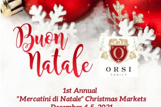 Sun, Dec 5, 2021 at 11:00 AM - Orsi Family Vineyards, 2306 Magnolia Dr, Healdsburg, CA, 95448. Join us for our first annual Christmas Markets at Orsi! Admission is free. Sip on unique Italian varietals while you stroll our marketplace. From beautiful, artisan produced items from Italy and our own homegrown and treasured artisans right here in Sonom...
