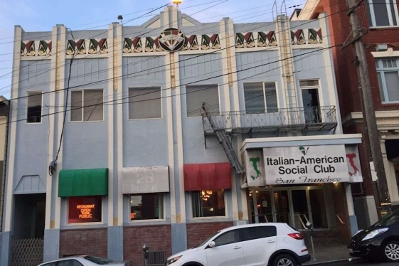 The first floor of the Italian-American Social Club has scarlet velvet wallpaper, dark wood paneling and a jukebox in the corner. A U.S. flag, an Italian flag and mostly black-and-white photos hang on the walls. Brass chandeliers with red polka-dot sconces and carved decorations frame the long, wooden bar. On one side is the restaurant’s dining roo...