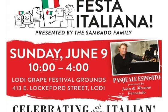 Get into the spirit of Italy at Festa Italiana. This family-friendly, fun event is scheduled for Sunday, June 9 from 10 a.m. to 4 p.m. at the Lodi Grape Festival Grounds. This grand event brings the community together with the finest food, activities and entertainment of the Italian culture. Renowned Italian Tenor Pasquale Esposito, presented by Jo...