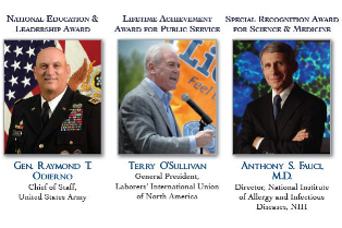 Join the Sons of Italy Foundation® (SIF) on Thursday, May 21, 2015, for the 27th Annual National Education & Leadership Awards (NELA) Gala. The signature Washington event returns to the National Building Museum to honor Gen. Raymond T. Odierno, Terry O'Sullivan, Anthony S. Fauci, M.D., Alfred Grasso and Geno Auriemma. In addition to these outstanding headline honorees, the SIF's national scholarship recipients -- chosen through a highly rigorous and competitive process -- will be showcased.