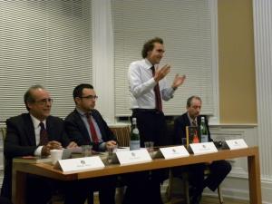 In addition of Dambruoso's forceful and compelling presentation of the arguments in his book, we were privileged to have on our panel Guido Olimpio, the Washington correspondent for leading Italian daily Corriere della Sera, who has written extensively on terrorism. Olimpio stressed how the Arab Spring has in some ways made the lives of Islamic fundamentalists easier. Daniele Moro, visiting scholar at the John Hopkins School of Advanced International and a leader of the US-Italy Global Affairs Forum, who has been studying the Maghreb situation closely, noted that transition to democracy in the region was a complex process, and the final results, and the impact on Europe, remain unclear. I focused on Dambruoso's book, underlining how it will help the public better understand the complex and important phenomenon of Islamist terrorism. The standing room only crowd was very engaged, asked lots of good questions, and continued the conversation informally after the "official" end of the event.