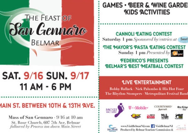 Belmar is prepping for its fifth annual Feast of San Gennaro coming up on Saturday and Sunday, rain or shine. The event will begin on Saturday at 10 a.m. with a Mass celebrated in Italian at St. Rose Church, followed by the traditional procession of the statute of San Gennaro to its place of honor on Main Street.