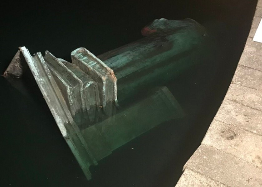 Shortly afterward, the statue was ripped from its foundation, spray painted, then set on fire. After that, the statue ended up in the lake. At the height of the destruction, agitators attacked an NBC 12 photographer, demanding he leaves the scene.