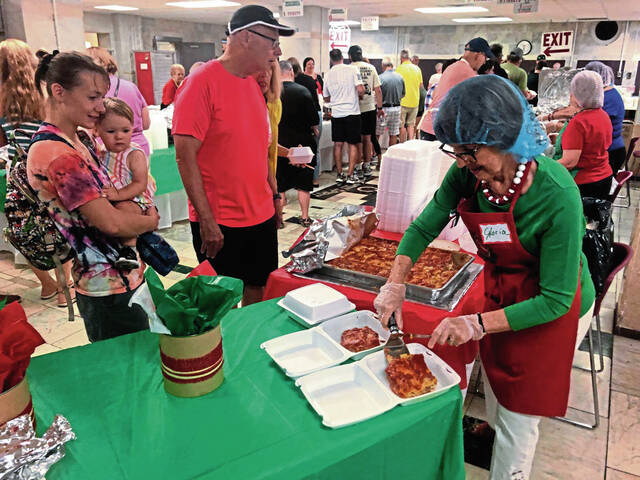 “The people look forward to our homemade food, especially the lasagna, and have come from all over the region, not just the Allegheny Valley,” said Brock, who is in her 25th year of volunteering for the festival. Almost all of the food for the event is prepared on-site leading up to the festival. It is cooked on festival days by volunteers, most of whom are retired.