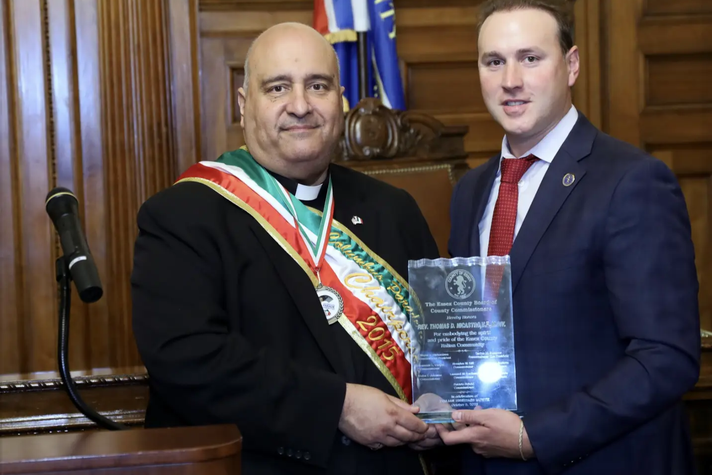The event is held yearly to celebrate the accomplishments of men and women of Italian heritage and honor outstanding Essex County citizens for their unique contributions to the county and society as a whole. Commissioner Leonard Luciano introduced Father Nicastro and presented him with his award.