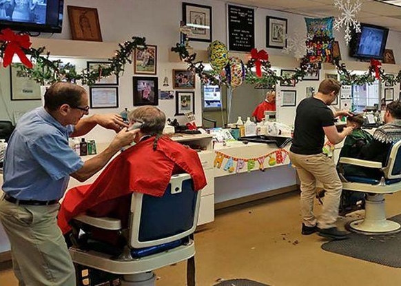 Patrick Carlson, Carmine Galati’s nephew, was cutting the lad’s hair while having a good chat with the boy’s father. Carmen Galati, the present day owner, was talking with and working on an older gentleman in the first chair, and Maryanne Curcio was busy chatting with and cutting her customer’s hair. It was like a well-oiled machine.