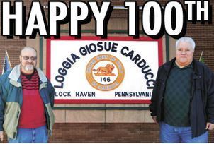To celebrate the 100-year milestone, the lodge will host a gathering of members and guests in its second-floor banquet room from 6 to 7 tonight, with a dinner to follow and several speakers, including local member Joseph "Satch" Sanders, who is also currently the Pennsylvania Sons of Italy second vice president.