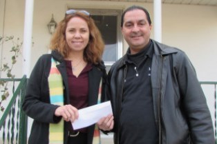Steve Pesce, President of the Italian American Citizens League presents Melanie Weiler, Executive Director with a check for $5,000 toward the renovation of the property at 138 West Cedar Street, directly next to the current KACS property.