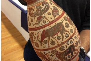 The exhibit features 120 pieces of Etrusco-Greco-Roman statues, mosaics and ceramics. They were all stolen and later recovered from art traffickers around the world by the Guardia di Finanza. The Guardia di Finanza, or Financial Guard, is a special unit of the Italian government. Members of the unit's Art Recovery Team are credited with retrieving almost a million stolen Italian antiquities in the last 100 years.