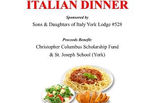 Italian Dinner Sponsored by Sons & Daughters of Italy York Lodge #528