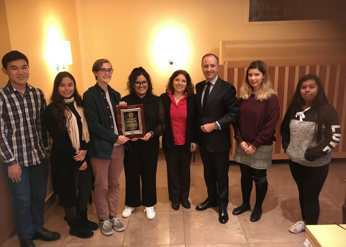 The winners of our 2018 video contest on the 12 fundamental principles of the Italian Constitution, part of Italian Language Week her in the US, were honored yesterday at the Embassy of Italy in Washington DC during an Award Ceremony. Domenico Bellantone, First Counselor, opened the ceremony illustrating the actuality of the Italian Constitution to the students of the Wheaton and J.F. Kennedy High Schools.