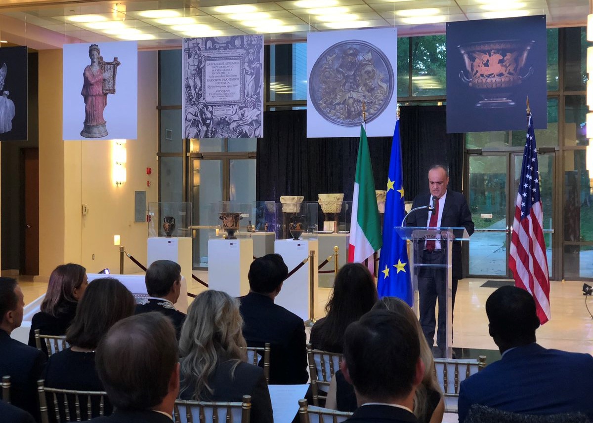 “Today we celebrate the sustained excellent results of an agreement signed 15 years ago which marked the start of an intense collaboration between Italy and the US in tracking down hundreds of illicitly exported artworks,” said Italian Minister of Cultural Heritage and Activities Alberto Bonisoli in his remarks during a ceremony at the Embassy of Italy in Washington DC for the presentation of the catalog Saving Art Preserving Heritage.