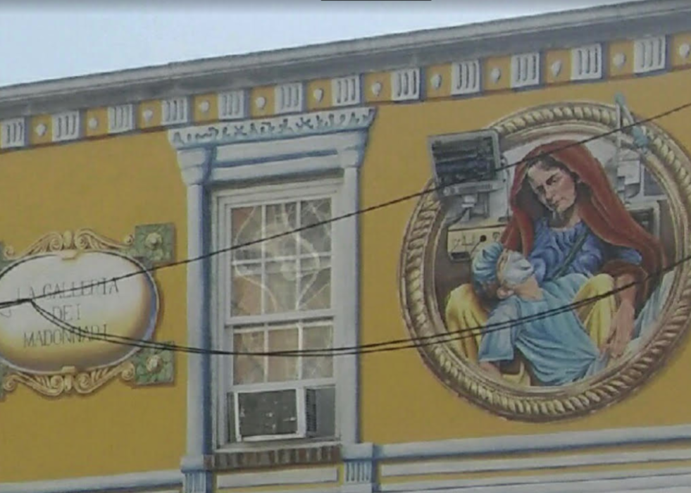 At 227 Slemmer's Alley in Little Italy, the Madonnari mural is coming along beautifully (pictured below), reports Cyd Wolf, Executive Producer of the Madonnari Arts Festival held in the neighborhood for the past five years. The mural is painted above the new yet-to-be-open Madonnari Gallery which will house a permanent exhibit dedicated to the art of the Madonnari and present exhibits of featured artists.