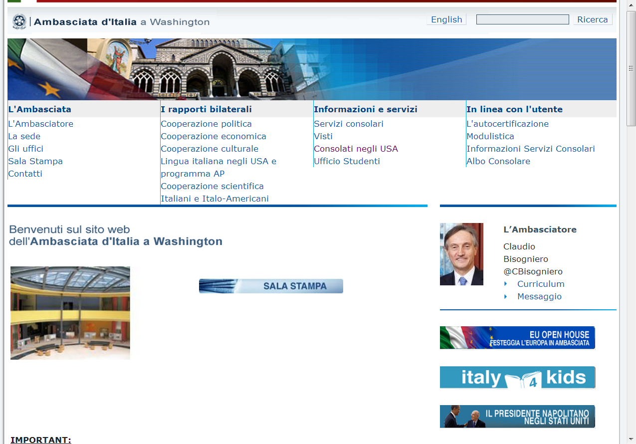 The project involves a social media application designed for desktops, tablets and smart phones as a point of encounter with the American public, the Italo-American community and anyone interested in Italy. Read more, in Italian.