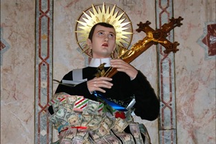 Following Mass I took the opportunity to admire the church architecture and fantastic collection of religious statuary. Naturally, we ran into many friends and made several new ones, including a friendly gentleman from Atripalda, as might be expected, near the statue of San Sabino di Avellino. Afterward, we enjoyed a terrific lunch at our friend Frankie Antipasto's tent, who specializes in artisan salumi and other southern Italian delicacies.