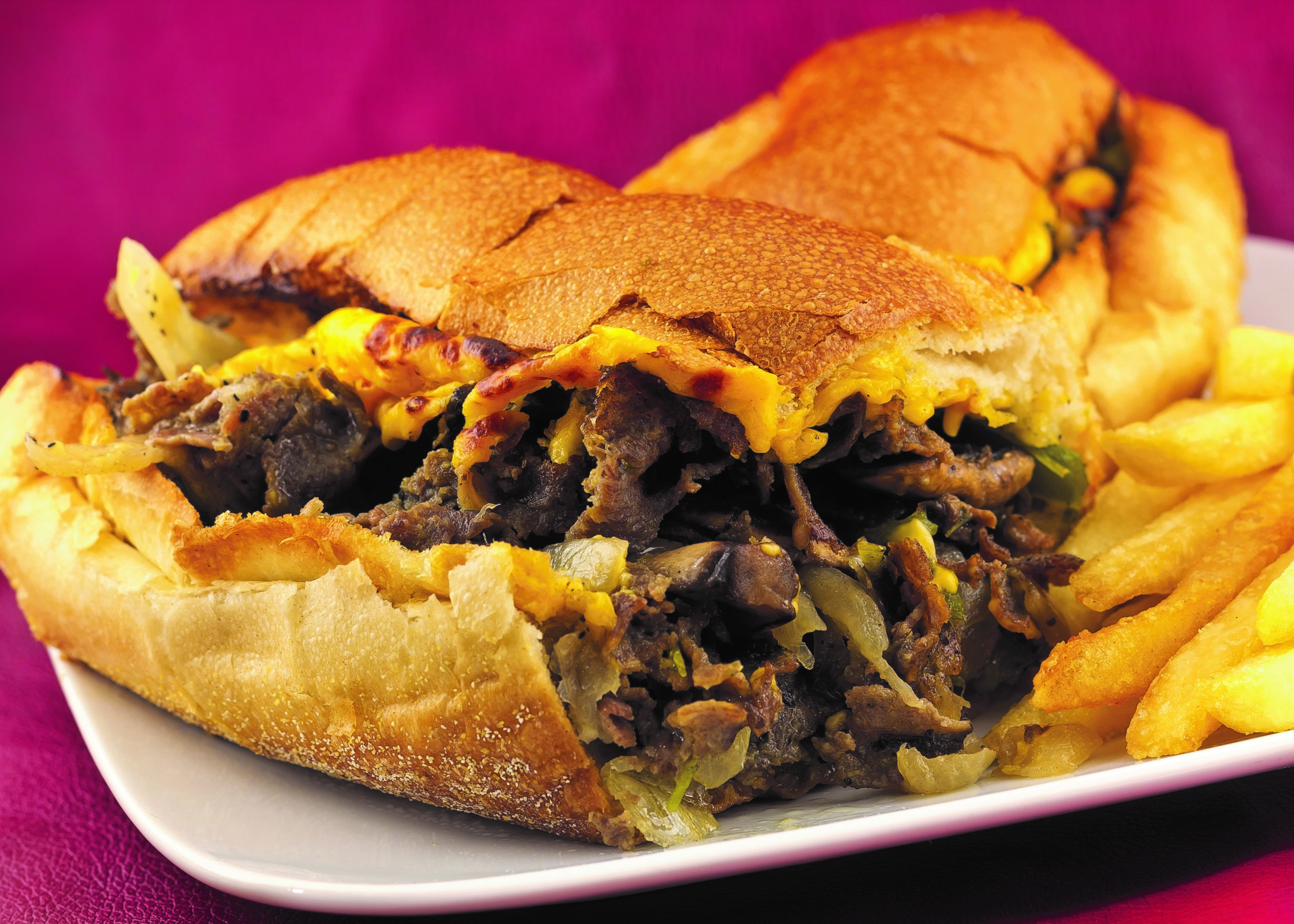 Made with thinly sliced, sautéed rib-eye beef and melted cheese—usually cheddar, or American, even Cheese Whiz, though provolone has been an option from the start—and served on a long, crusty roll with fried onions, spicy peppers, sometimes sautéed mushrooms and tomato sauce.