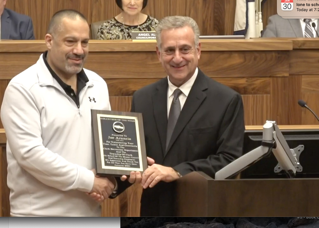 At a Clark Township Council meeting held Jan. 17, resident Joe Arancio was recognized as the recreation department’s 2023 Volunteer of the Year.