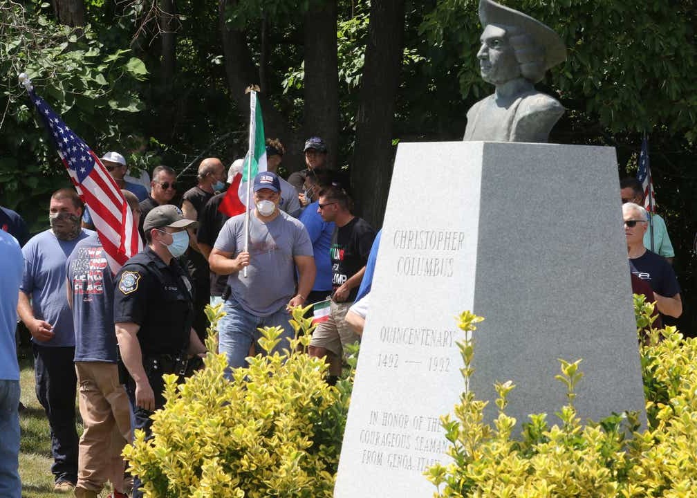 Two groups representing opposite sides of a national debate showed up Friday afternoon to argue over whether to remove a bust honoring Christopher Columbus at the Parsippany Municipal Building. Sparks flew on occasion when some of the pro-Columbus delegation heckled and swore at the those who favored removing the memorial. Police stepped in between the two groups.