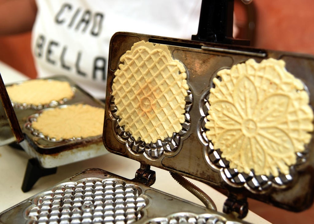 In the basement of the old Saint Leo School in Little Italy, the sweet scents of cinnamon, vanilla and lemon surrounded the neighborhood ladies and other volunteers last Saturday as they made “pizzelle,” Italian waffle cookies, for the Saint Anthony Festival.