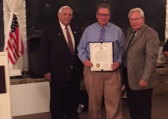 Gene Antonio,VP & Manny Alfano Pres. of the Italian/American One Voice Coalition presenting the UNA VOCE (One Voice) award and the New Jersey Legislature Resolution to Pres. William Schievella of the Italian/American Police Society of New Jersey, which was originally given at a recent meeting of The New Jersey Legislature.