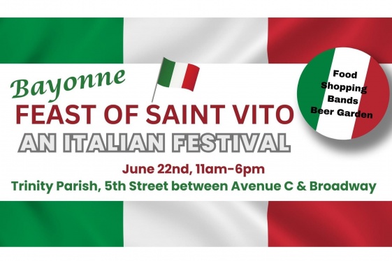 The Bayonne Heritage Association will host the first annual St. Vito Festival on Saturday, June 22, from 11:00 a.m. to 6:00 p.m., on 5th Street, between Broadway and Avenue C. The event will begin with a procession and prayer over the image of St. Vito at 11:45 a.m. There will be welcoming remarks at 12:00 noon. The feast honors St. Vito, also k...