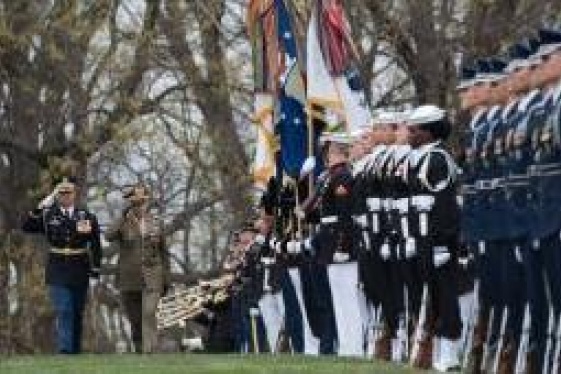 Gen. Claudio Graziano, Chief of the Defense Staff of Italy, laid a wreath at the Tomb of the Unknown Soldier during an Armed Forces Full Honors Wreath-Laying Ceremony with Maj. Gen. Bradley A Becker, U.S. Army Military District of Washington commanding General, to honor America's fallen at Arlington National Cemetery March 31, 2016. The Un...