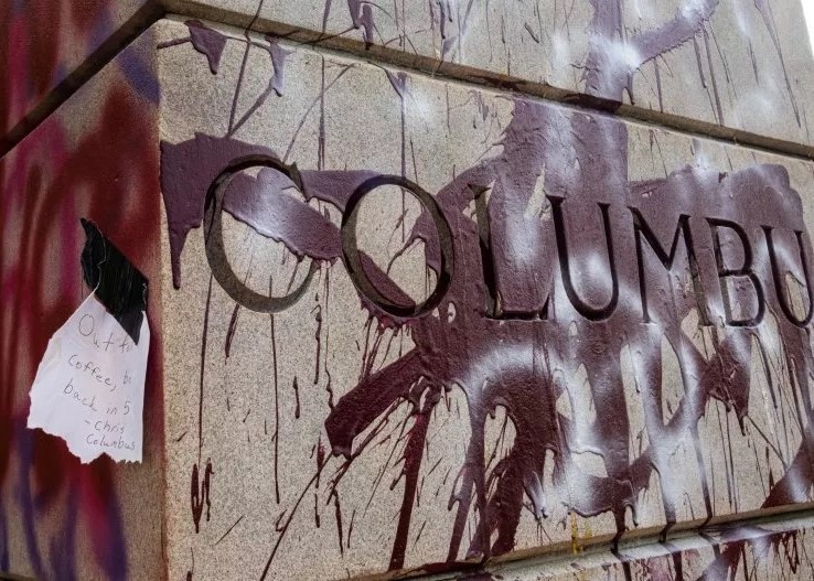 The statue of explorer Christopher Columbus that looms over Astoria Boulevard was vandaliz...