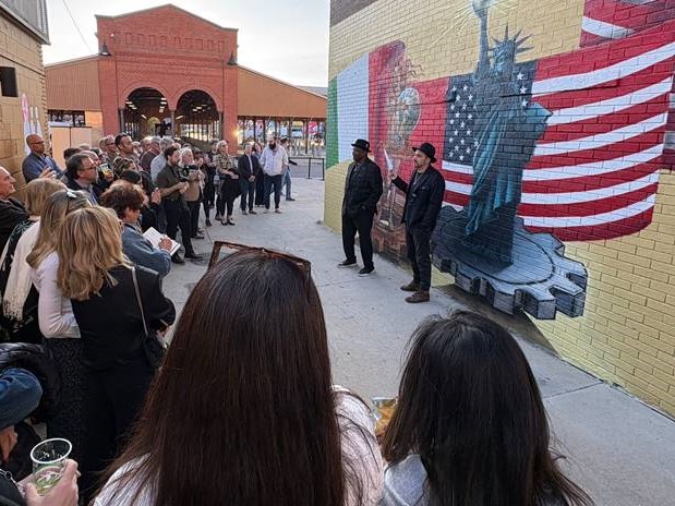 Consul of Italy in Detroit Allegra Baistrocchi welcomed the artists, Italian artist in residence Nico Bruchi and celebrated Detroit muralist Hubert Massey, as well as Wladyslaw Fuchs of the Volterra-Detroit Foundation, and all the numerous guests of the Italian-American community to the event. Depicting the incredible ties between Italy and the United States, the mural is located at 2510-2534 Market Street, across from Eastern Market Shed 2, in the heart of what used to be “Little Italy”.