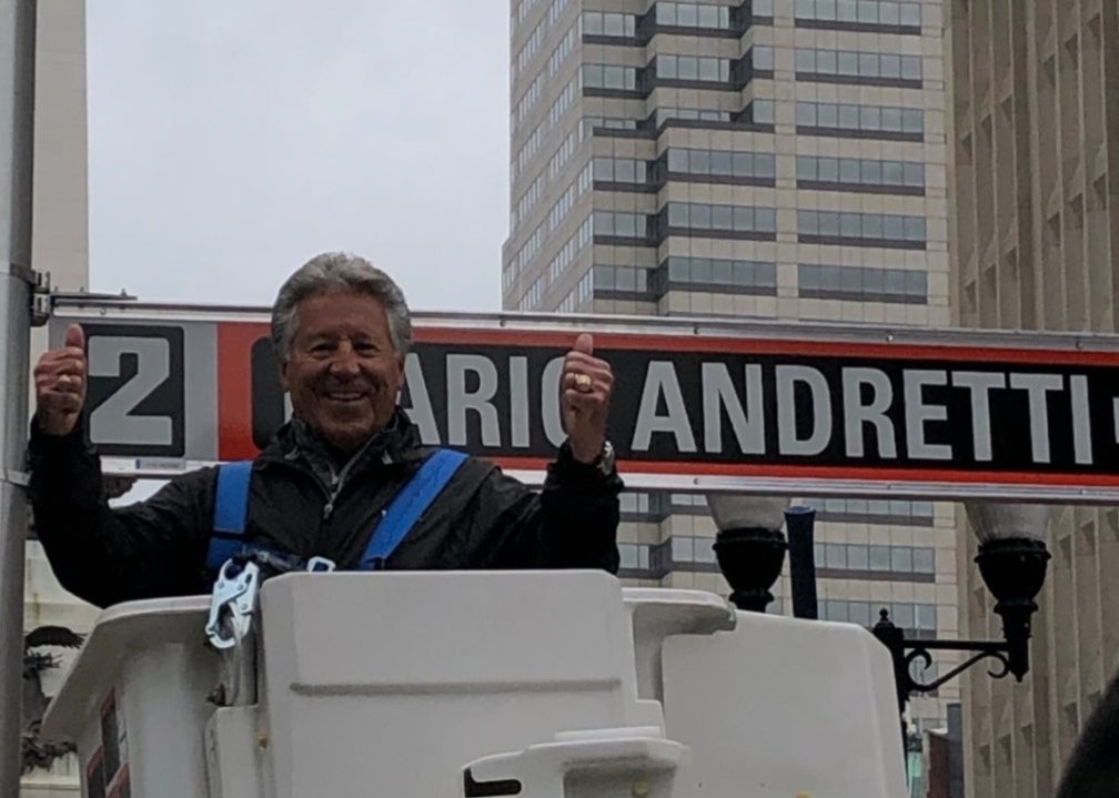 Andretti himself helped put up the sign, getting into a cherry picker to help hang the placard at the corner of Washington and Meridian through the 2019 Indy 500 scheduled for Sunday, May 26. "My very own street," Andretti wrote alongside the announcement on Twitter. "Now I need to hang the speed limit sign. I brought a Sharpie with me just in case I don't like it."