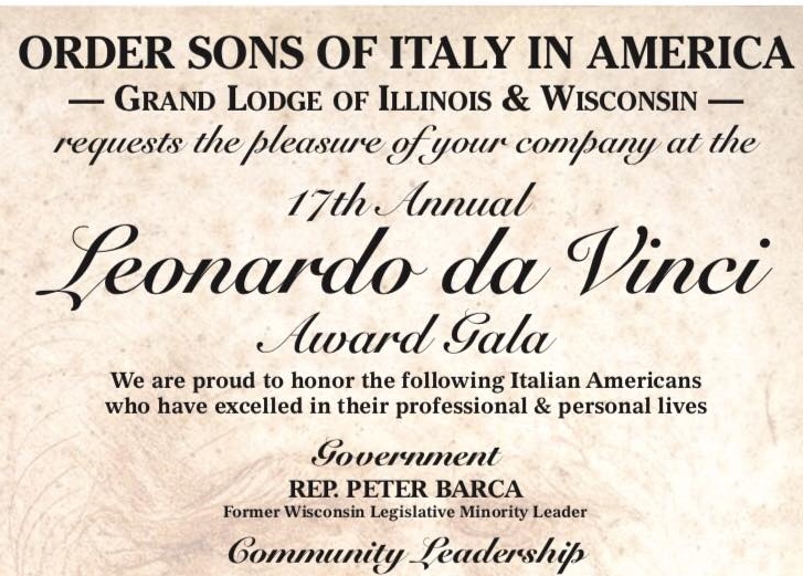 The first person to be honored is former Assemblyman Peter Barca and the concluding honoree is Tonette Walker, the wife of the Governor of Wisconsin, Scott Walker.  However, in-between the other honorees all are contributors to the health, welfare, and benefit of society and they are:  Anthony J. Bruno of the Italian Workman’s Club of Madison, Wisconsin; Luigi Caira, a dentist from Kenosha, Wisconsin; as well as John DiMotto, a judge in Milwaukee, Wisconsin; and Joseph Emanuele, the Vice President of the Italian Community Center in Milwaukee, Wisconsin; and Joseph Mangiamele, Professor Emeritus of the UWM School of Architecture; CJ Martello, the Fra Noi Correspondent from Chicago; and Deacon Russell Missureli, the Chaplain of the Roma Lodge; Dr. Kathryn Occhipinti of Rosedale, Illinois; and Attorney John F. Salza of Milwaukee, Wisconsin. Walker.