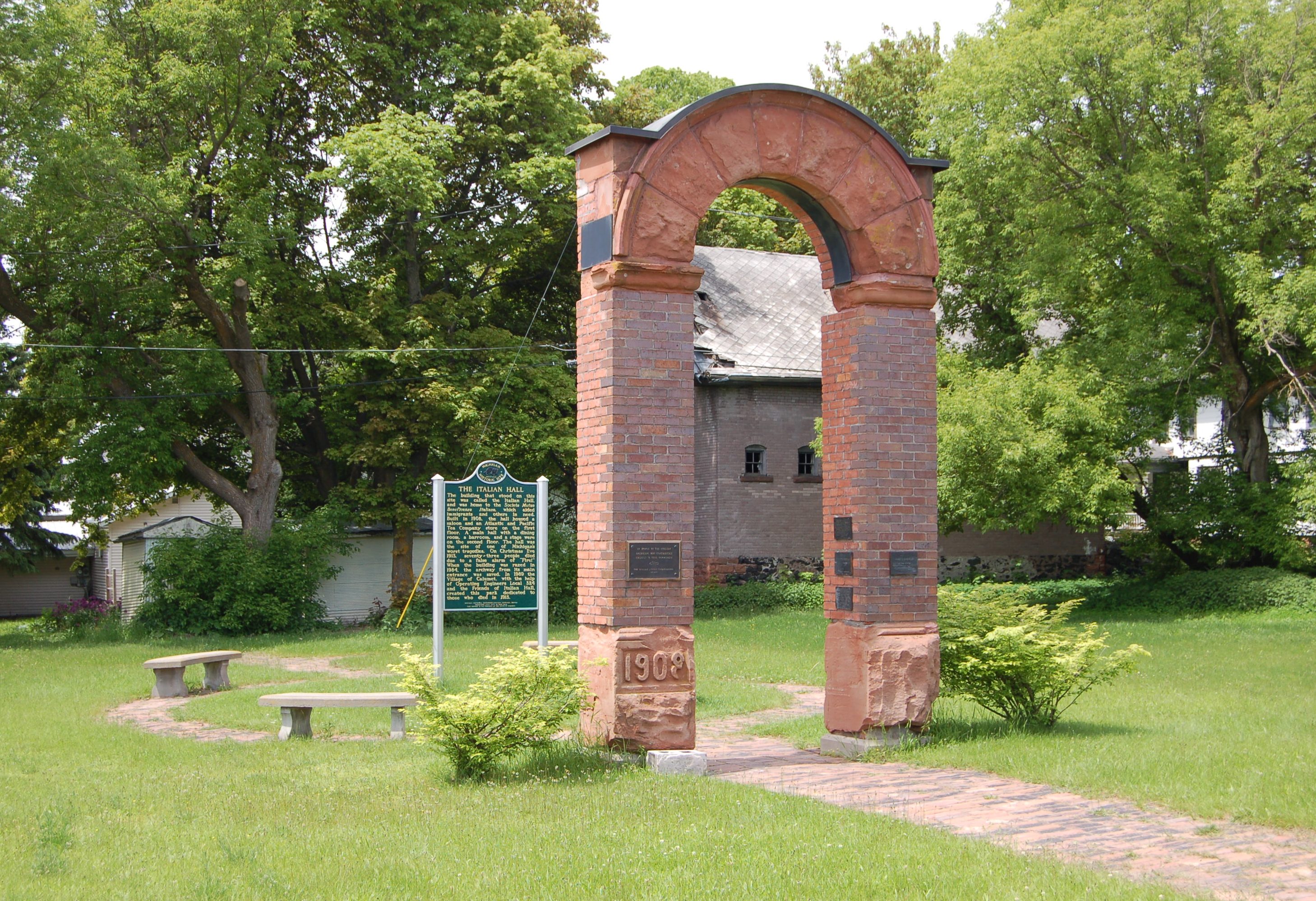 The monument listing the names of the victims of the Italian Hall disaster, which occurred on Dec. 21, 1913, is scheduled to be installed in the Italian Hall Memorial Park on Seventh Street around the first week of November, according to Mike Lahti, Italian Hall Memorial committee chairman. In addition to installing the monument, the committee is also in the process of replacing some of the brick paving stones at the entrance to the park with poured concrete.