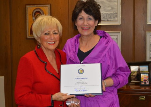 Cook County Treasurer Maria Pappas has commissioned Jo Ann Serpico as an Honorary Cook County Deputy Treasurer in recognition of her longtime activism in the Italian community. “Without Jo Ann’s contributions over many years, the Italian community would not be as vibrant as it is today,” Pappas said when presenting Serpico with her commission at a ceremony attended by about 20 community leaders.