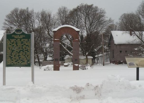 The arch of the Italian Hall serves as a reminder of the tragedy that took place in 1913, where 73 people were trampled to death during a Christmas Eve party, 59 of them children. An independent committee has spearheaded efforts to build a monument for the fallen at the Memorial Park.