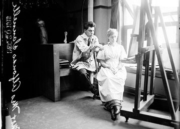 Some of Iannelli’s works include many sculptures, product designs for advertising, and works based on a liturgy. The collection of works on display include charcoal studies for the stained-glass windows at St. Patrick’s Church, marketing materials and products for Oster Manufacturing, and advertising for Horlick Malted Milk Co. Also, Iannelli was hired by famous designer Frank Lloyd Wright to create sculptures for a Midway Gardens project in Chicago.