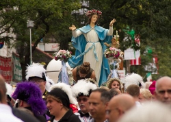 A statue of the Virgin Mary passed through the crowd; spectators made donations to the church and the money was pinned to the statue. The annual celebration, which began Friday, Aug. 11, also includes a carnival and lots of local restaurants selling their best treats.
