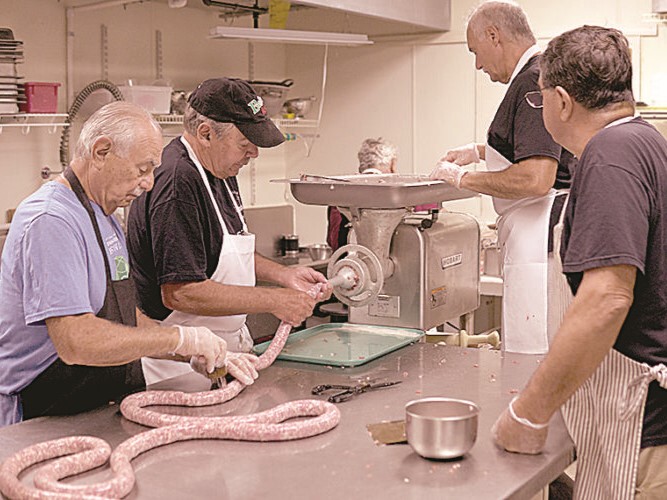 It purchased the bread for the sandwiches from Cellone Italian Bread Co. in Pittsburgh and the pork to make the sausage from Jacob and Sons Quality Meats in Martins Ferry. “Today we’re finishing up making the sausage for the Italian Festival. We have two tables full of ladies who are cutting the buns for our sausage links,” Sons of Italy President Bill Ault said.