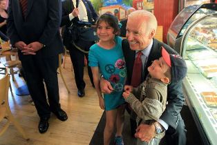 Vice President Joe Biden followed his well-known sweet tooth to Little Italy on Wednesday after speaking at the RTA's rail shop on the need for investment in infrastructure.
